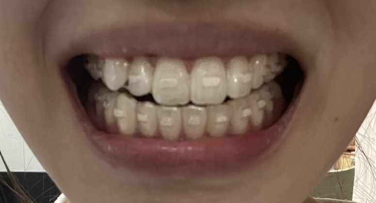 マウスピースが歯にしっかりフィットしていないと、マウスピースと歯の間に浮きが生じ、その隙間が目立つようになります。