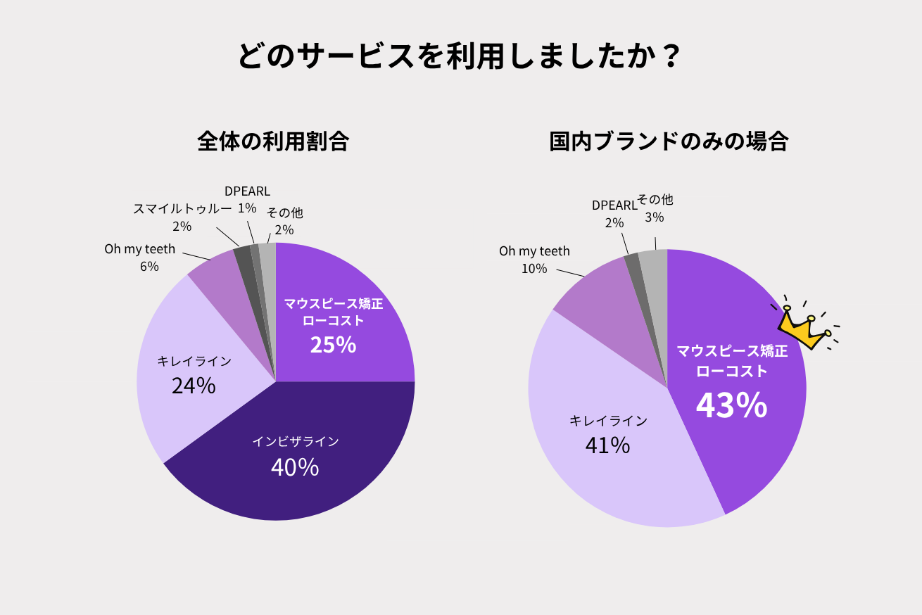 これらのブランドが選ばれた理由としては、インビザラインの知名度の高さを除き、コストパフォーマンスに優れたマウスピース矯正ブランドに人気が集まっている傾向にあります。基本的に健康保険が使えない矯正治療は高額な費用となるため、料金体系は特に重要な要素として捉えられているようです。