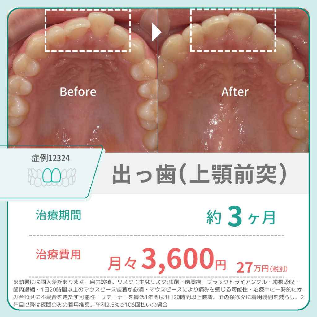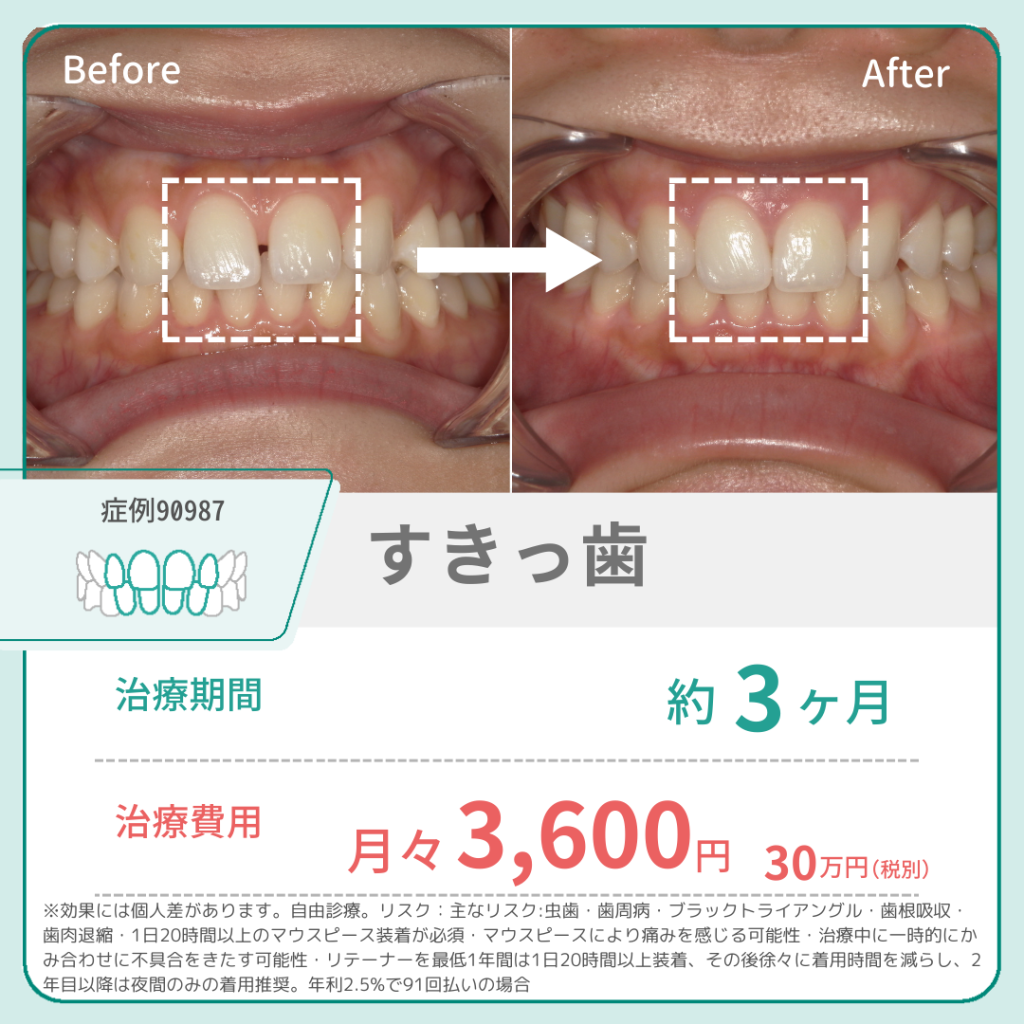 料金は業界最安水準の総額17.6万円〜、経験豊富な歯科医師による丁寧なカウンセリングで、あなたの歯並びに最適な治療方法をご提案します。
